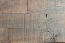 フローリング用の原板の質感を活かし、あえて表面の加工はせずに帯鋸目やシミを残すことで実現した、本物の古材のような雰囲気を…